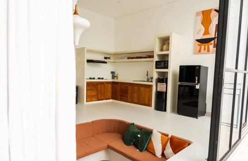 Welcome to our 2BR Tropical Mediterranean-Style Villa, nestled in a serene location in Pererenan. Experience ultimate relaxation with beautifully designed outdoor spaces.