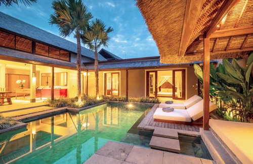 Nestled in the heart of Bali's lush landscapes, Bumbak Park Villas is a tranquil oasis offering 12 private villas, each with its own unique style and ambiance. Set within a sprawling 4,000 square meters of meticulously landscaped tropical gardens adorned with native and exotic flora, this enchanting retreat combines luxury with nature. Popular amenities include an outdoor swimming pool, complimentary WiFi, an airport shuttle, family rooms, free parking, non-smoking options, air conditioning, and a delectable breakfast. Conveniently located near Batu Belig Beach and Nelayan Beach, with Ngurah Rai International Airport just a short drive away, the property also offers a free airport shuttle service. Explore the nearby Jl Pantai Berawa, Finns Beach Club, Métis Restaurant, Restaurant Sarong, and more, all within easy reach. At Bumbak Park Villas, every moment is an opportunity to experience the beauty and culture of Bali in perfect harmony.