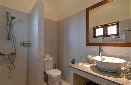 You rent the villa in its entirety. So there are no other guests. Our permanent staff consists of a housekeeper (2 housekeepers with more than 4 guests or up to 4 guests on special request at extra cost), a gardener and a security guard. Their service is included in the rent. The housekeepers (pembantu's) will cook for you 6 days a week, keep the villa clean, make the beds and take care of your daily groceries. They can even do your laundry and ironing, even if it is for your own risk. The maintenance of the garden and pool is entrusted to our regular gardener. The security guard keeps an eye on things at night and protects the guests and the villa. If necessary, he is your contact during those hours. Bed linen, towels and beach towels are sufficiently present and included in the price. The villa has free wireless internet. All bedrooms have individually controlled air conditioners. Three bedrooms are furnished with decorative double beds in bamboo style with mosquito net. The fourth bedroom has two single beds, also with mosquito net. After your arrival you will be offered a simple free welcome dinner, as well as a breakfast the next morning. No smoking is allowed inside. You can do this outside under the covered terrace or on the spacious sun terrace. Because of the thatched roofs of the villa and those in the immediate vicinity, open fire such as barbecue, fire pits etc are as well as fireworks and so-called wish-balloons not allowed.
