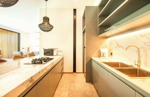 Discover Villa Noma Pererenan, an exquisite 4-bedroom villa with ensuite bathroom that blends modern and ethnic design in the trendy neighborhood of Pererenan. Perfect for families or groups of friends seeking a peaceful retreat, the villa is located in a tranquil area, yet close to the beach and all the action. Book your stay now and indulge in Villa Noma 2's serene ambiance. The big plus is the enclosed living room.