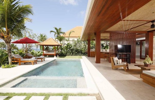 Lies in the serenity of Amarta Beach Retreat in Tabanan, features a comfortable 3-bedroom private pool villa with a tasteful minimalist design and graceful Balinese touch. The Villa boasts spaciousness, its semi-outdoor living area overlooking a glimmering private pool, the village’s lush local vegetation, and tranquil tropical gardens with a gazebo. Fully equipped with a kitchen and en-suite bathrooms, designed to provide peace and privacy, perfect for families and friends gatherings and those seeking a beach holiday and total privacy. Provides easy access to enjoy all of Amarta Beach Retreat’s facilities, the oceanfront infinity pool in which you can enjoy a spectacular view of the ocean, Lilly by The Sea Beachfront Dining to enjoy freshly homemade food and beverages with the island’s freshest ingredients, direct access to the beach, provides curated local experiences with guided walks, village cycling, ATV ride adventure, and complete your day to relax your mind, body, and soul at the Manggar Spa. Enjoy the tranquillity and peacefulness and have a complete journey to enjoy true Bali experiences.
