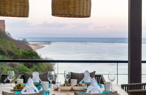 Perched majestically on the southernmost cliffs of Bali’s Bukit Peninsula, this breathtaking five-bedroom retreat spans three opulent levels, seamlessly blending contemporary elegance with the natural beauty of the ocean beyond.