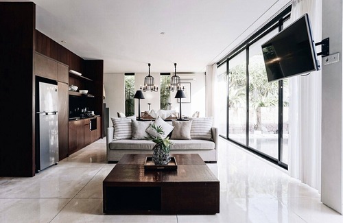 Ensconced in the lushest neighbourhood of Nusa Dua amidst five-star resorts, Ambergris Villa indulges with an unrivalled tropical villa experience anywhere on the island. This sun-drenched three bedder boasts an outdoor pool, a separate living quarter and a sheltered outdoor jacuzzi next to a well manicured greenery. The modern aesthetic is well-balanced by maximum comfort at every turn and exquisite furnishings. Floor-to-ceiling sliding doors ascertain ample natural light beaming into every living space at all times. The cascading outdoor design lends itself to a unique vantage point evoking a super relaxing ambience. Local favourite Geger Beach is a short five-minute walk away.